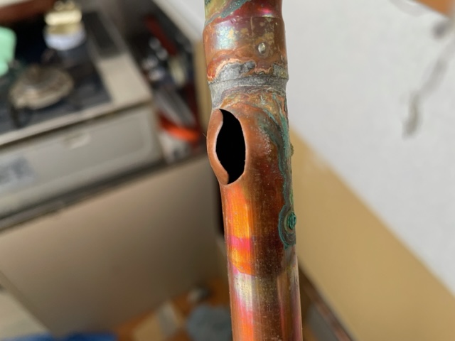 原因はやはり凍結による配管の破裂で、破裂した銅管を新しいものに溶接しなおして改善しました。