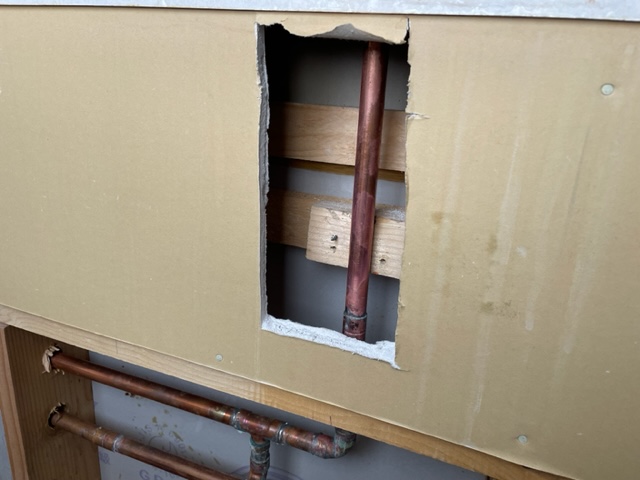 お湯側だけ止水すると収まったとのことで現在は水しか使用できないため、台所を引き出して調査をしました。