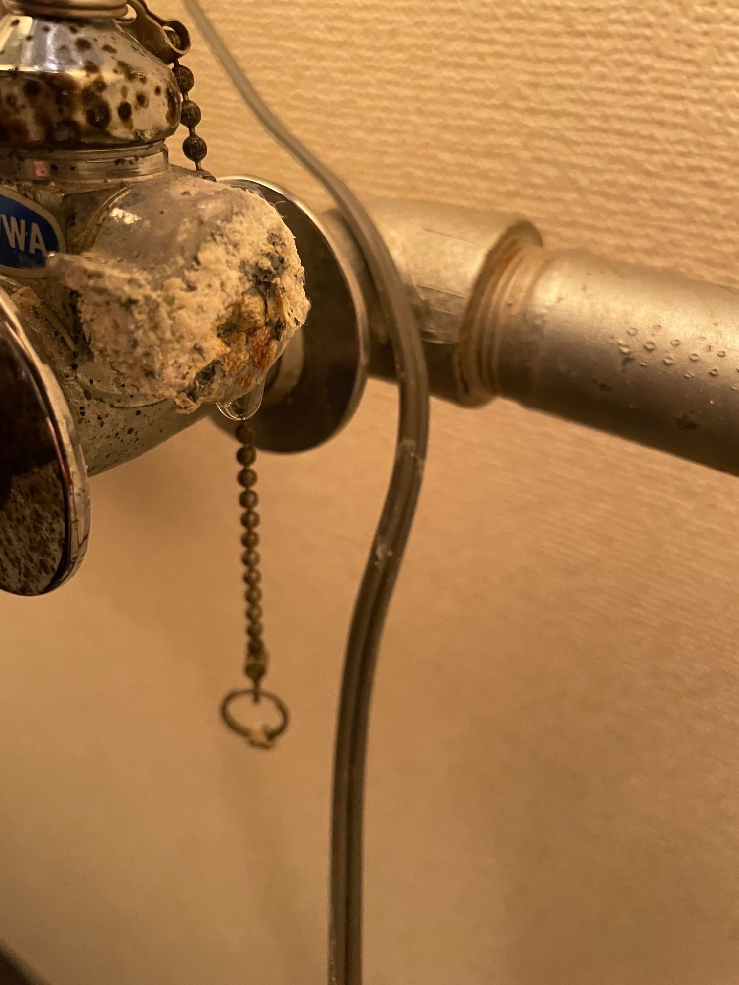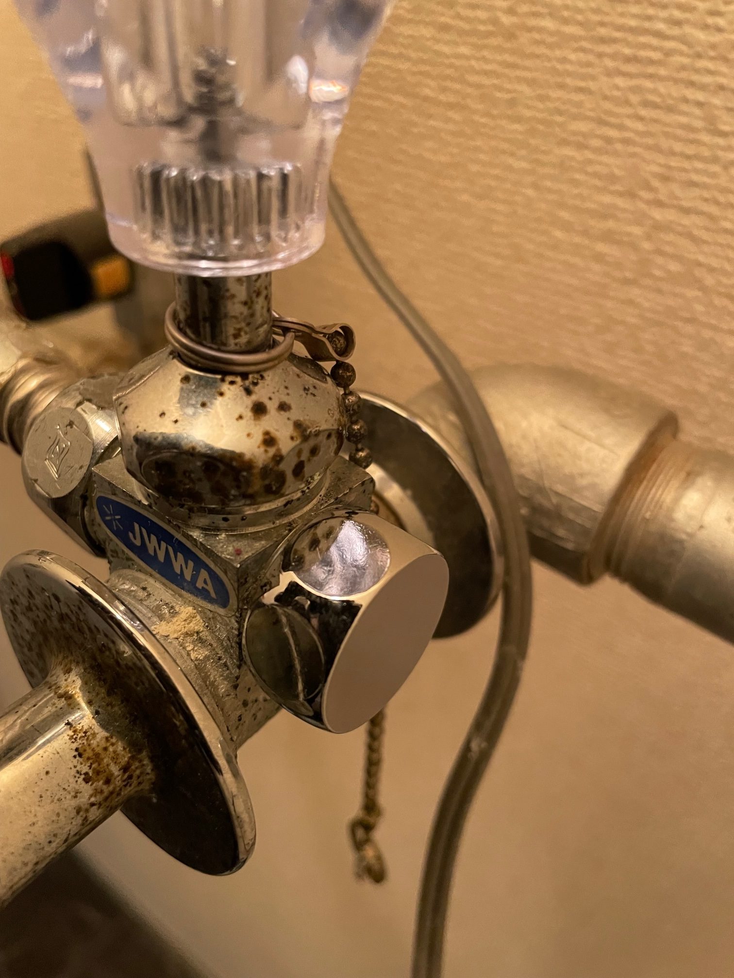 三方分岐水栓のキャップナット部分が腐食し小さな穴が空いて水漏れしている状態でした。